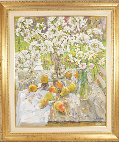Lovely sill life by one Ukraine's art masters. Kokin lived and worked in Dnipropetrovsk where we visited him in his studio. His works are in a large number of private collections and musea. A treasure for your home, office or a wall near you!