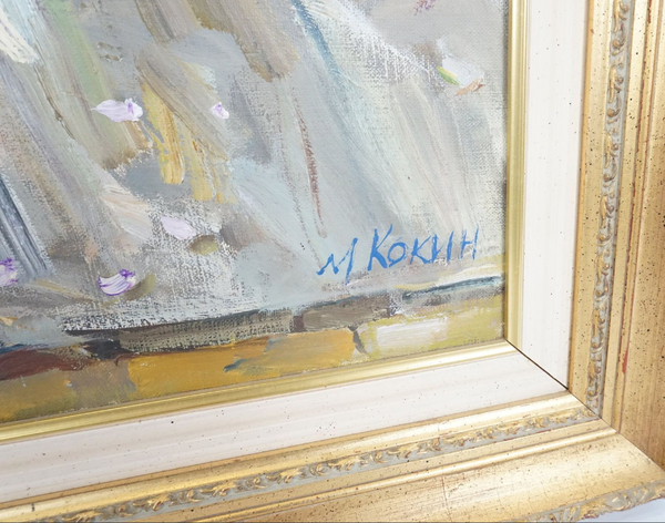Lovely sill life by one Ukraine's art masters. Kokin lived and worked in Dnipropetrovsk where we visited him in his studio. His works are in a large number of private collections and musea. A treasure for your home, office or a wall near you!